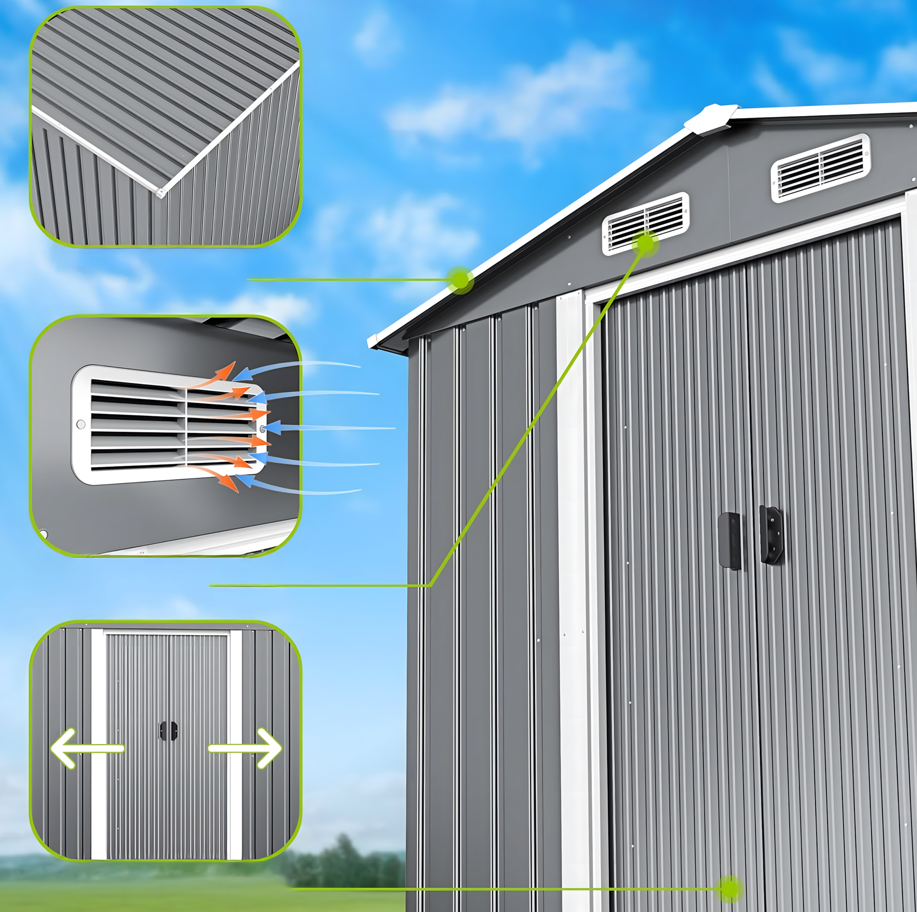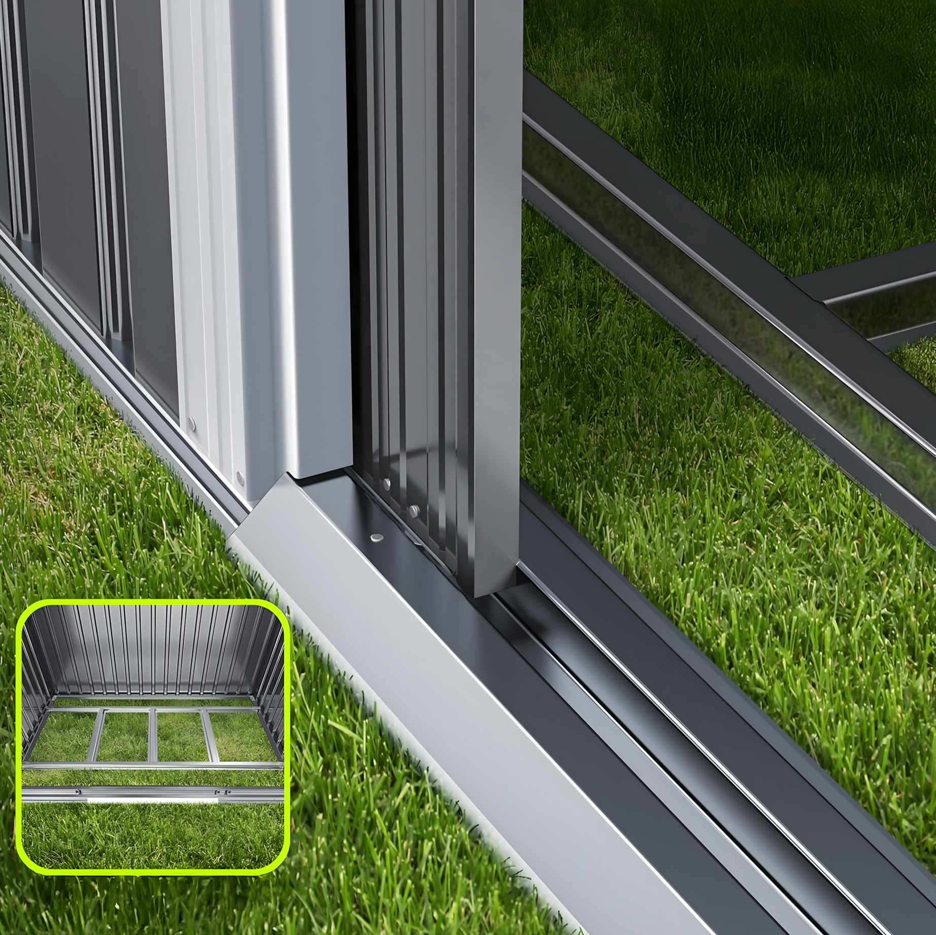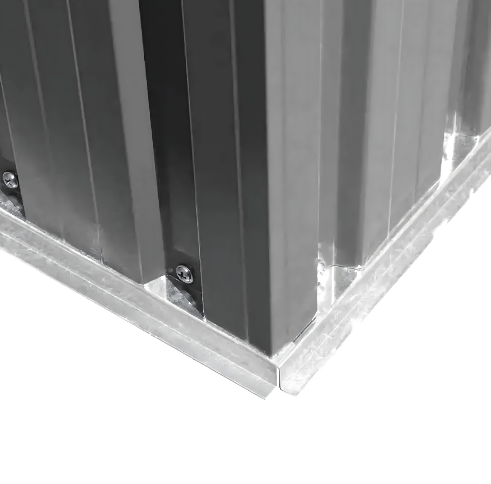 Konstrukcja z ocynkowanej stali to klucz do wieloletniej wytrzymałości domku. Materiał jest odporny na rdzę, wilgoć i zmienne warunki pogodowe, dzięki czemu nie wymaga impregnacji ani regularnej konserwacji.